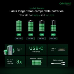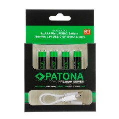 PATONA Premium zestaw 4x popularnych paluszków R3 AAA z USB-C i kabelkiem USB-C z 1 na 2.