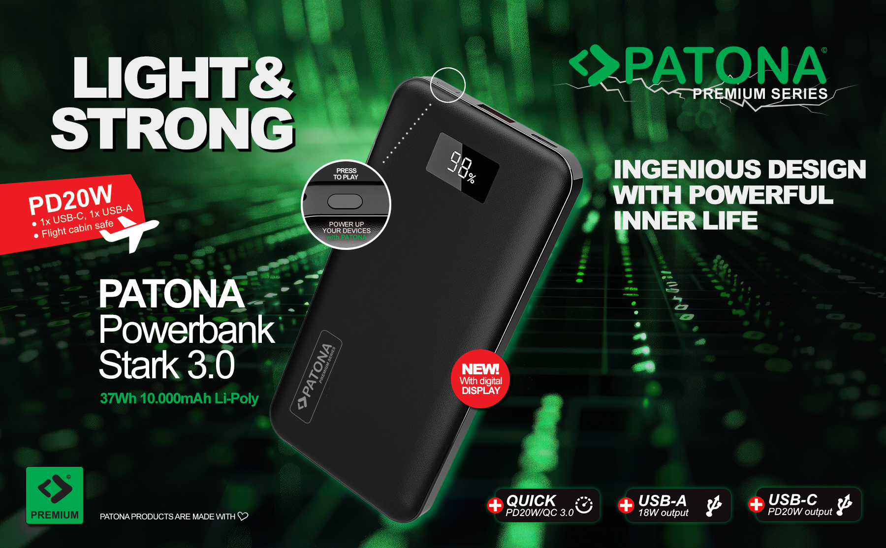 Prezentujemy smukły i lekki Powerbank PATONA Premium Stark 3.0 z PD20W i pojemnością 10.000mAh.